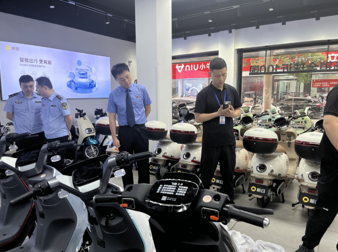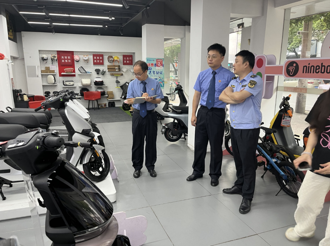 检查组随机抽查了四家电动自行车经营场所,重点检查电动车是否存在非法改装、销售不合格产品等违法违规行为,并对头盔、充电器、电池等情况进行详细检查。
