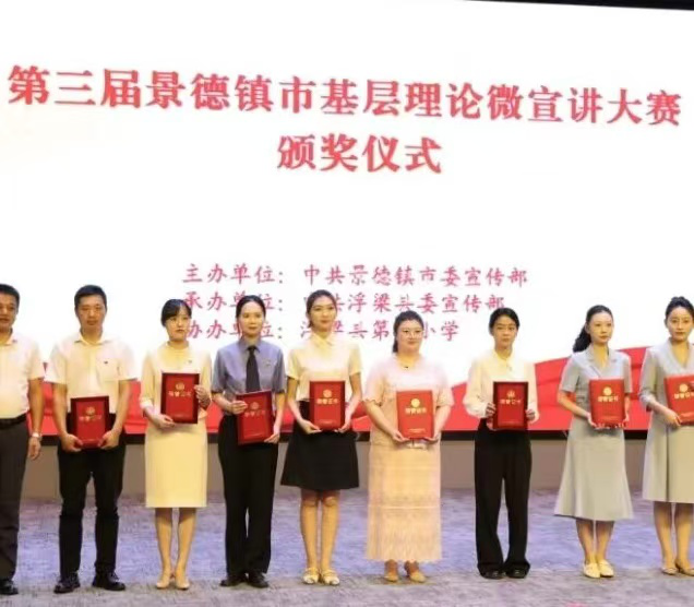 右图:程陶佳在中共景德镇市委宣传部主办的“砥砺新征程 宣讲新使命”第三届景德镇市基层理论微宣讲大赛宣荣获优秀奖。