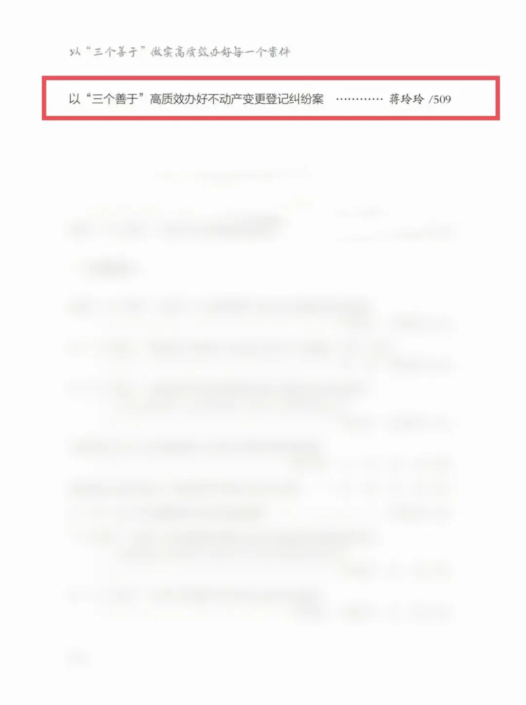 院党组成员、副检察长蒋玲玲撰写的《以“三个善于”高质效办好不动产变更登记纠纷案》被中国检察出版社《以“三个善于”做实高质效办好每一个案件》一书收录。