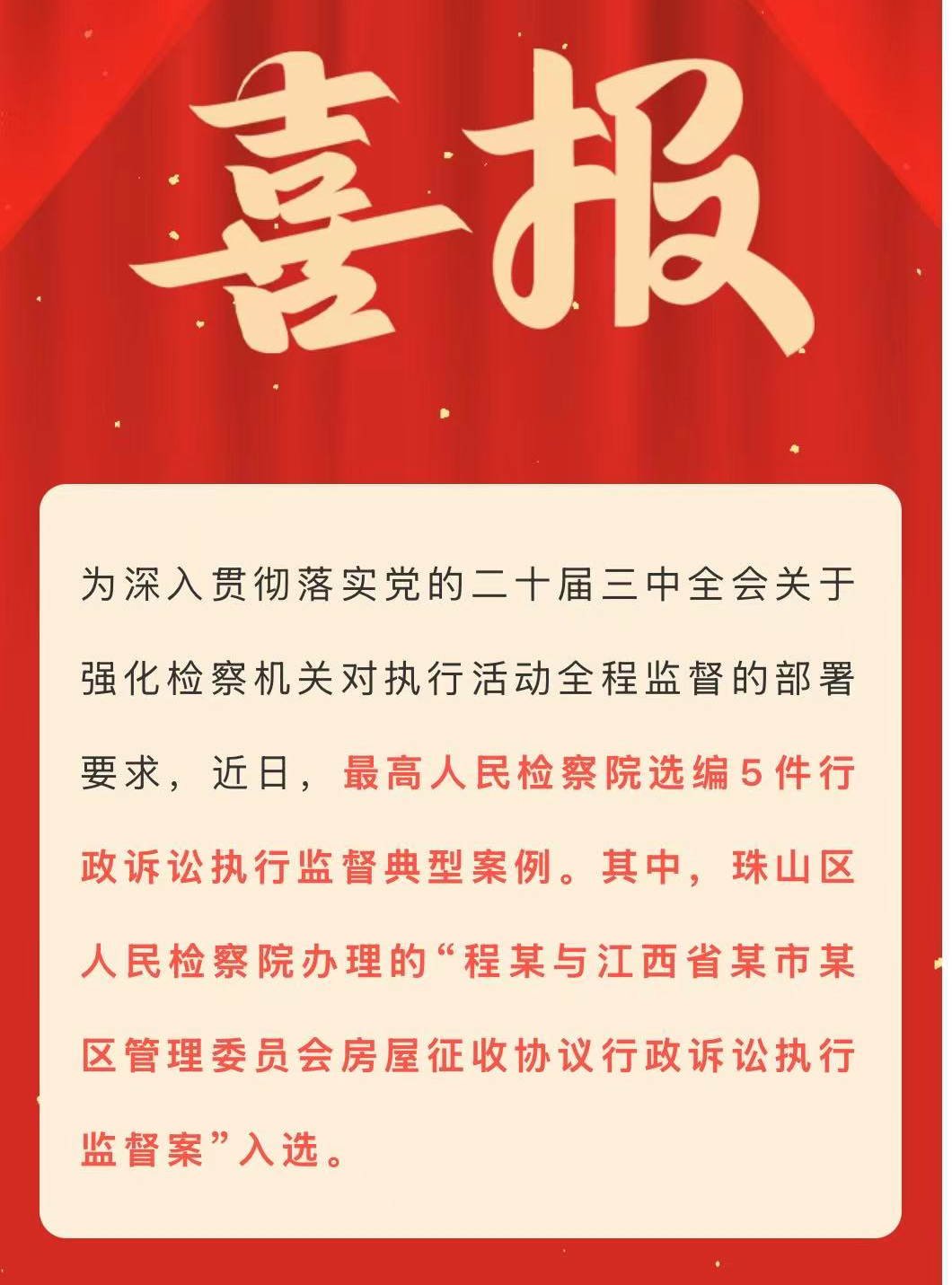 左图:团队办理的“程某与江西省某市某区管理委员会房屋征收协议行政诉讼执行监督案”入选最高人民检察院行政诉讼执行监督典型案例。