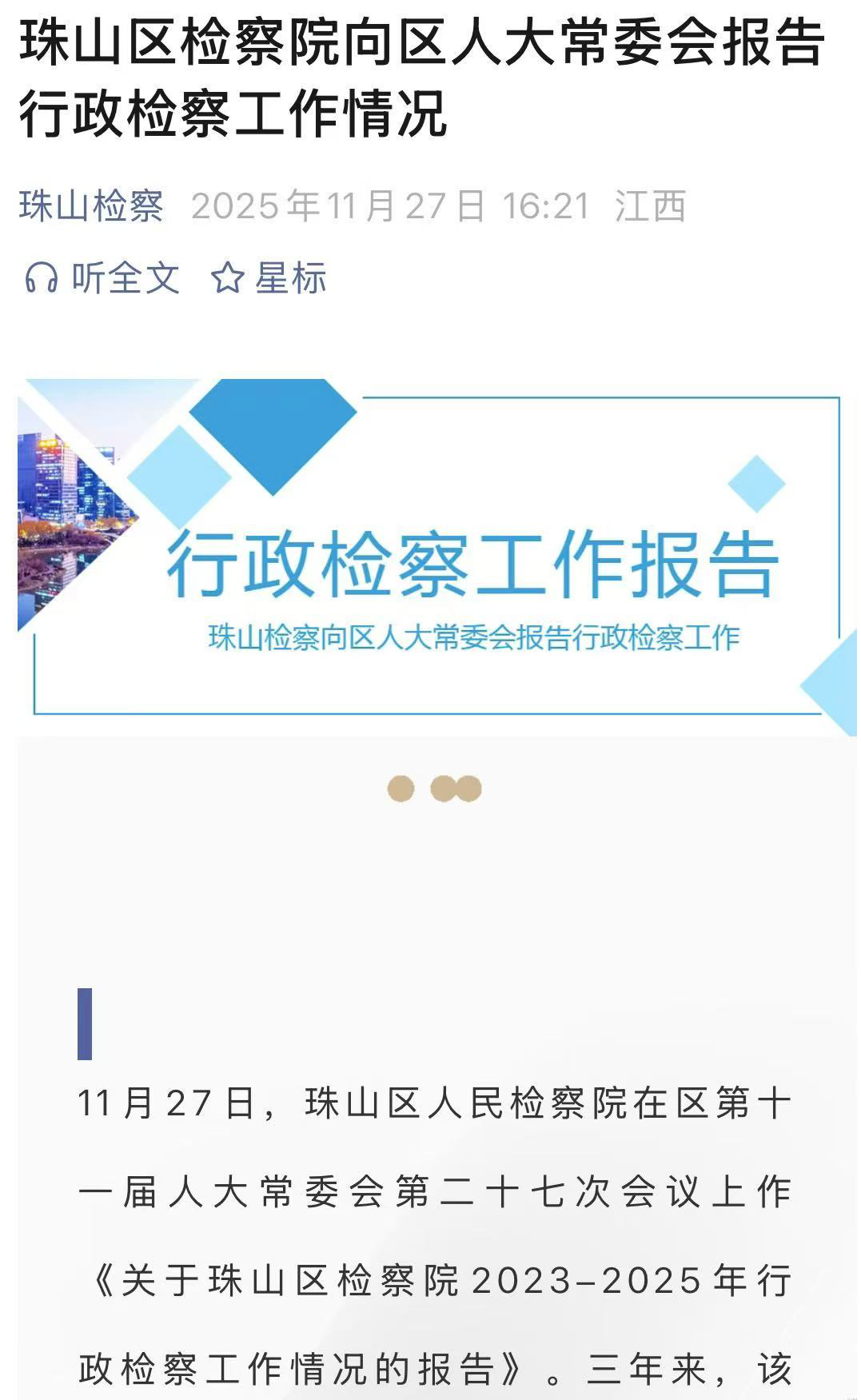 珠山区人民检察院在区第十一届人大常委会第二十七次会议上作《关于珠山区检察院2023-2025年行政检察工作情况的报告》。
