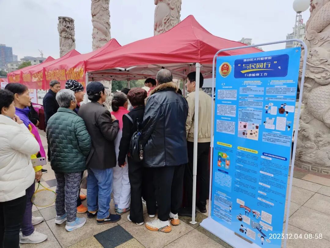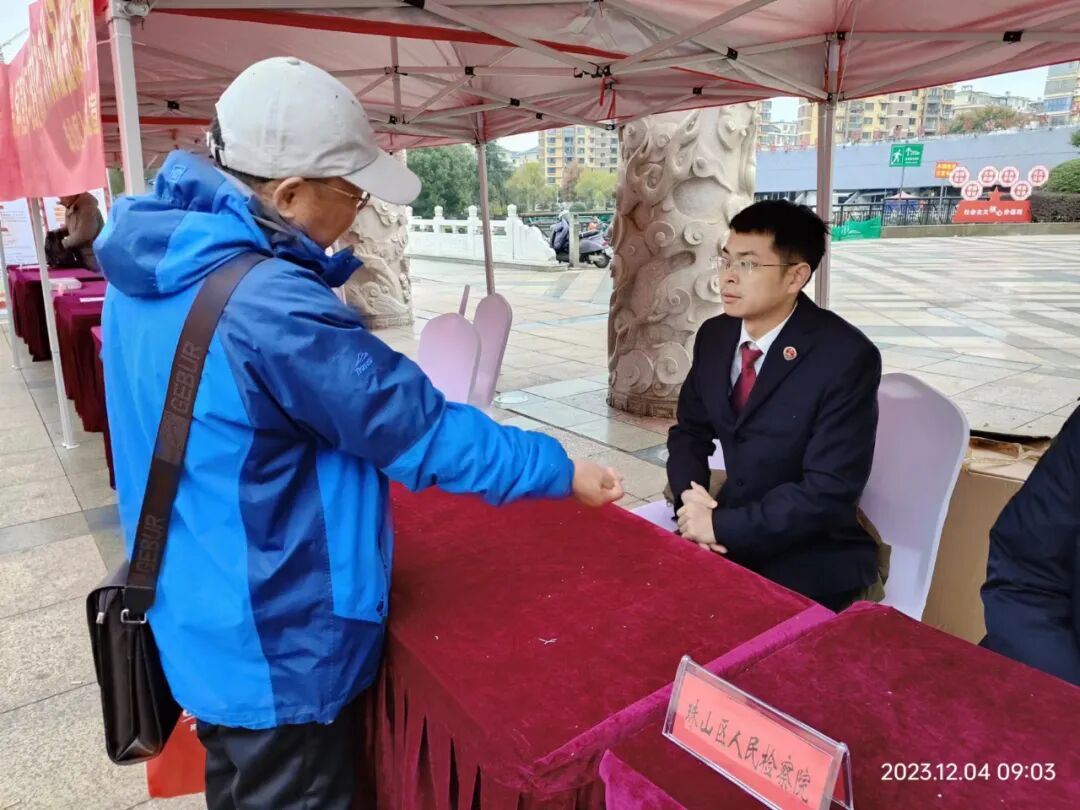 12月4日,在第十个“国家宪法日”到来之际,珠山区人民检察院紧密结合习近平法治思想学习和“八五”普法实施,联合多部门在昌江广场开展宪法日宣传活动。