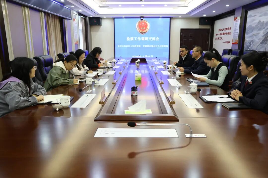 11月21日,山东省东营市垦利区人民检察院党组成员、副检察长王晓晴等一行五人到珠山区检察院交流学习,院党组成员、副检察长朱建义,党组成员、检委会专职委员胡雅文等参与交流。