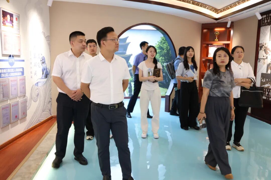 陈建华一行实地参观了珠山检察院廉政文化陶瓷壁画、“七色堇”未检工作室、院史陈列馆、党建活动室、职工书屋、“与民同行”行政检察工作室等场所,沉浸式体验了该院的品牌建设、检察文化、廉政文化、陶瓷文化氛围。