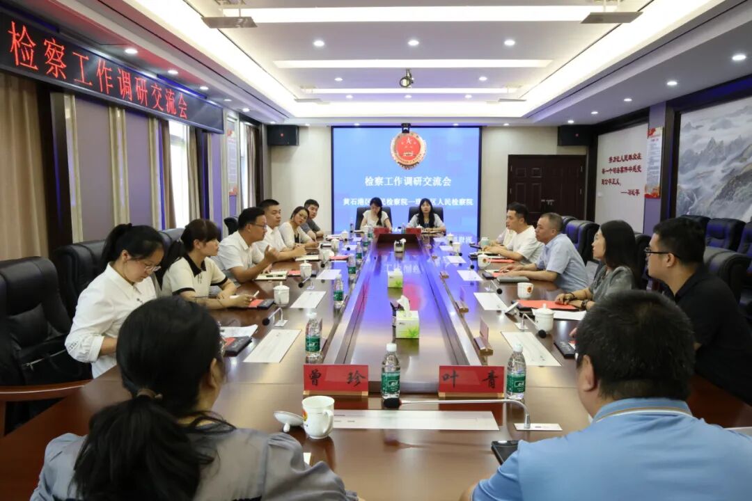 为进一步深化互学互鉴,推动两院经验共享,共促发展。9月18日,湖北省黄石市黄石港区检察院党组书记、检察长陈建华,党组成员、副检察长张焕林带领检察干警一行10人到珠山区检察院开展交流学习。珠山区检察院党组书记、检察长李锋,党组成员、检委会专职委员蒋玲玲及相关部门主任参加交流座谈会。
